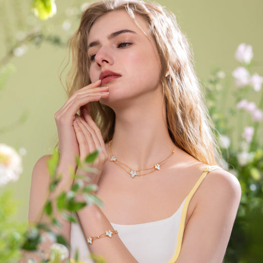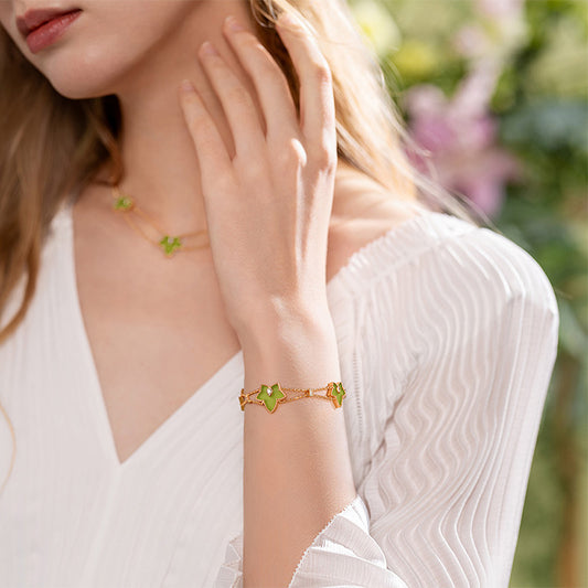 New Ivy Mother of Pearl Bead Three-Leaf Bracelet
