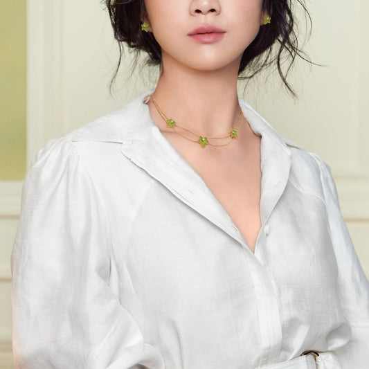 New Ivy Green Onyx Bead Three-Leaf Necklace