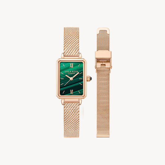 Ms Lola Slender Waist Malachite Textured Watch with Two Strap Set