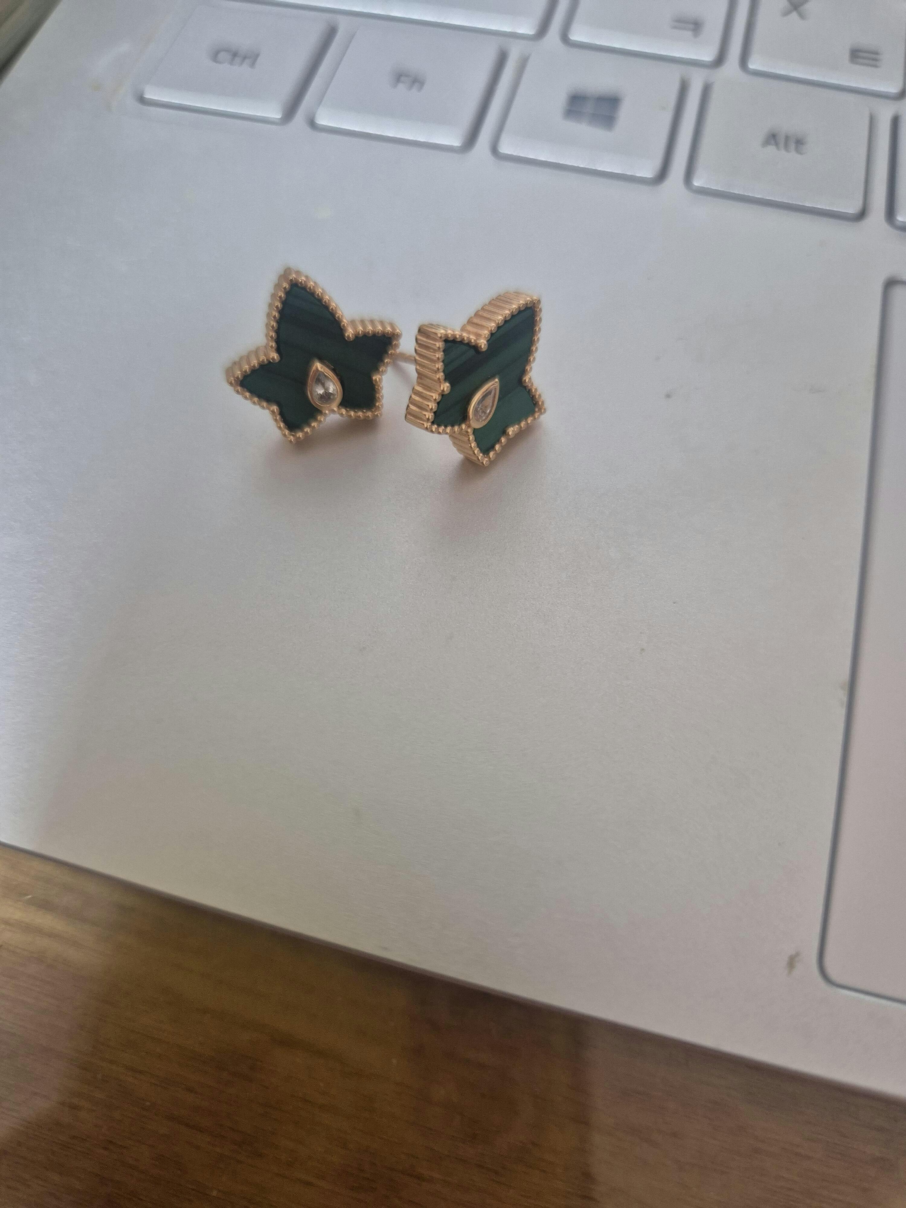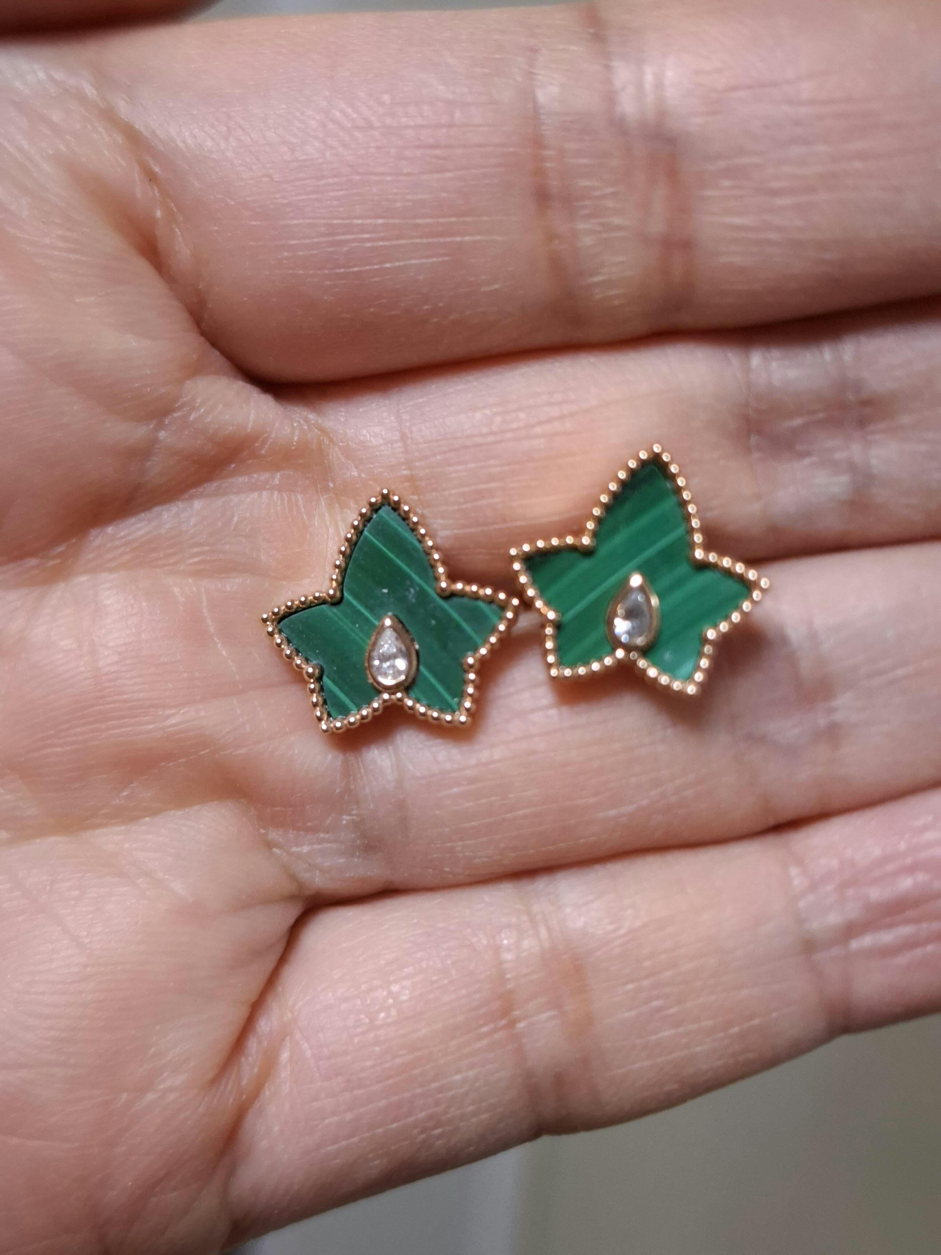 담쟁이 잎모양의 이어링 플레이트는 천연 말라카이트로 마감되었고 지르코니아 큐빅이 우아함을 더합니다.