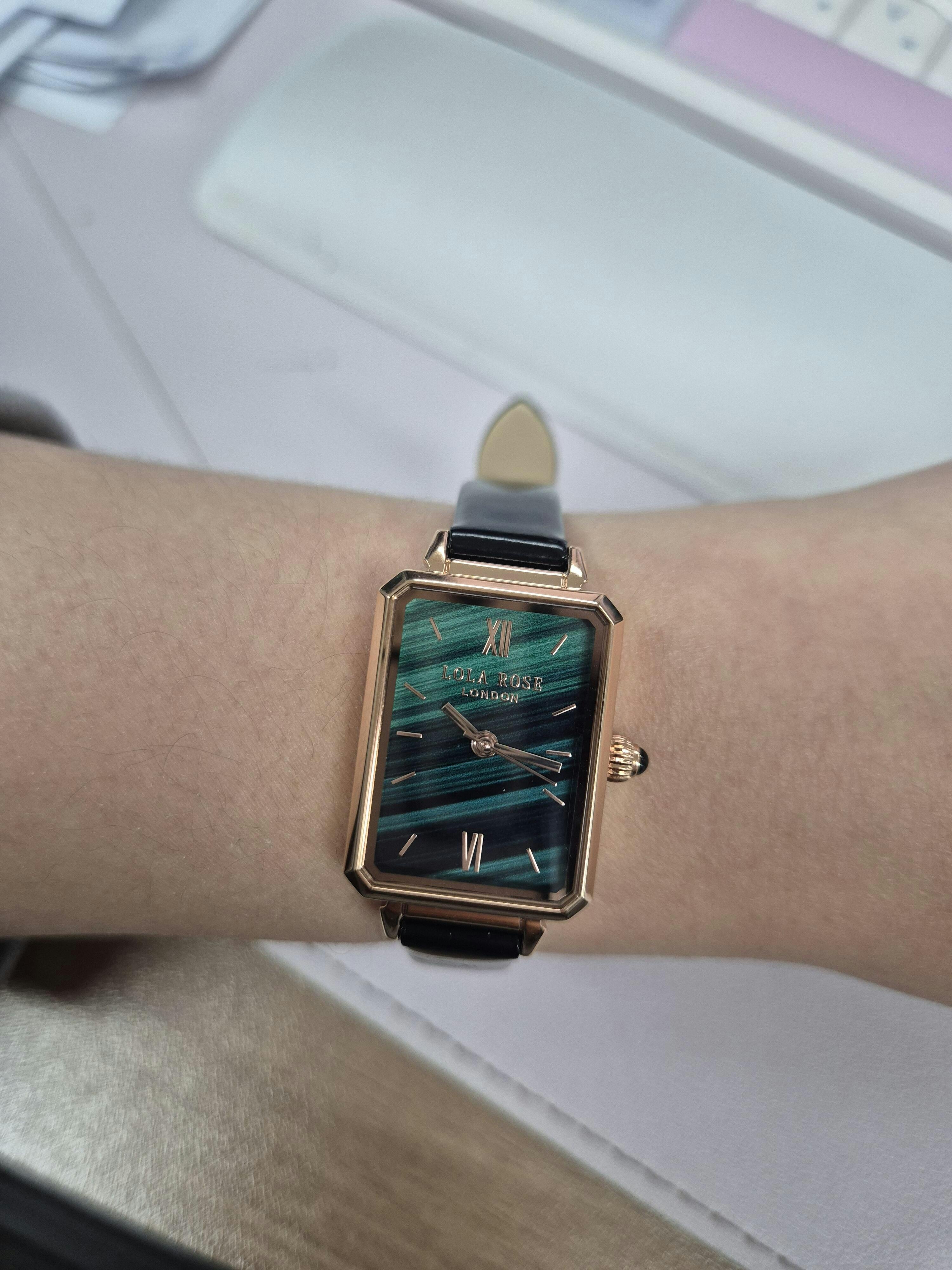 세련되고 우아한 로즈골드 케이스와 매혹적인 말라카이트 그린 다이얼, 편안한 블랙 가죽 스트랩은 스타일과 실용성 모두를 만족시키는 가장 영국적인 오브제를 완성합니다.