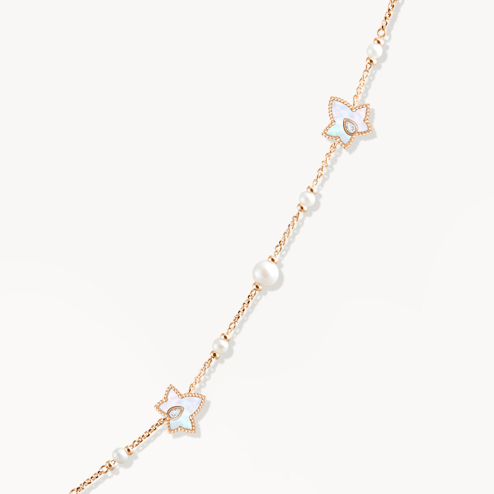 New Ivy Mother-of-Pearl Freshwater Pearl Bead Necklace, 5-leaf motif