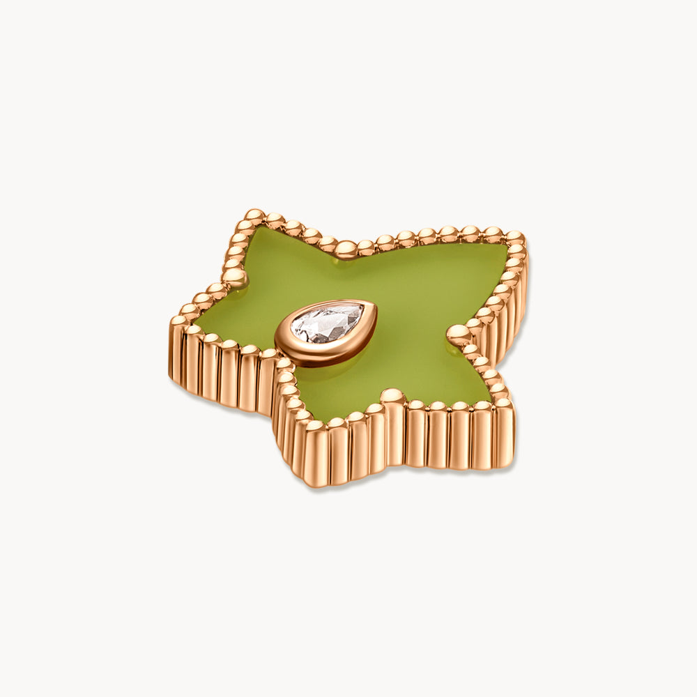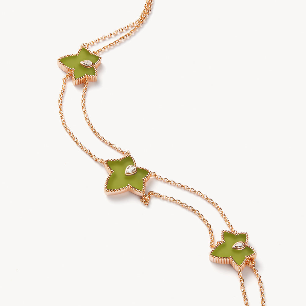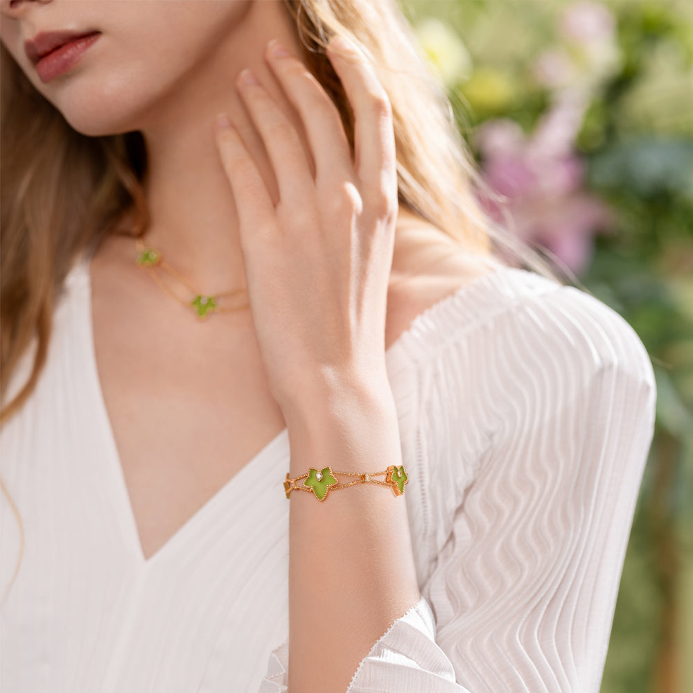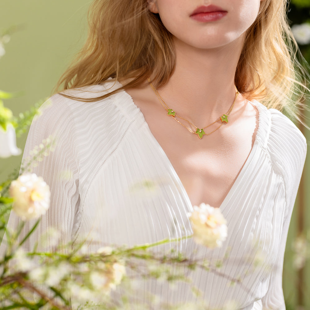 New Ivy Green Onyx Bead Three-Leaf Necklace