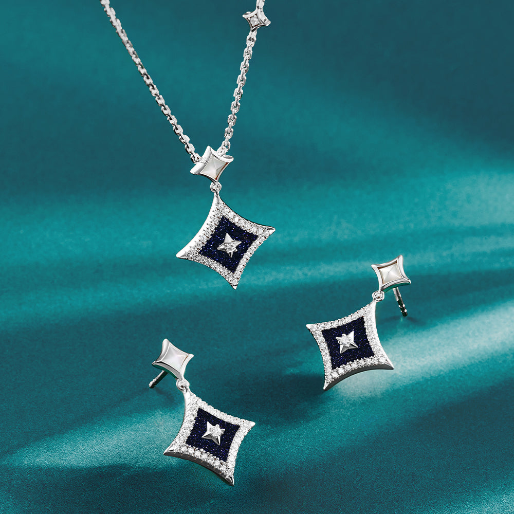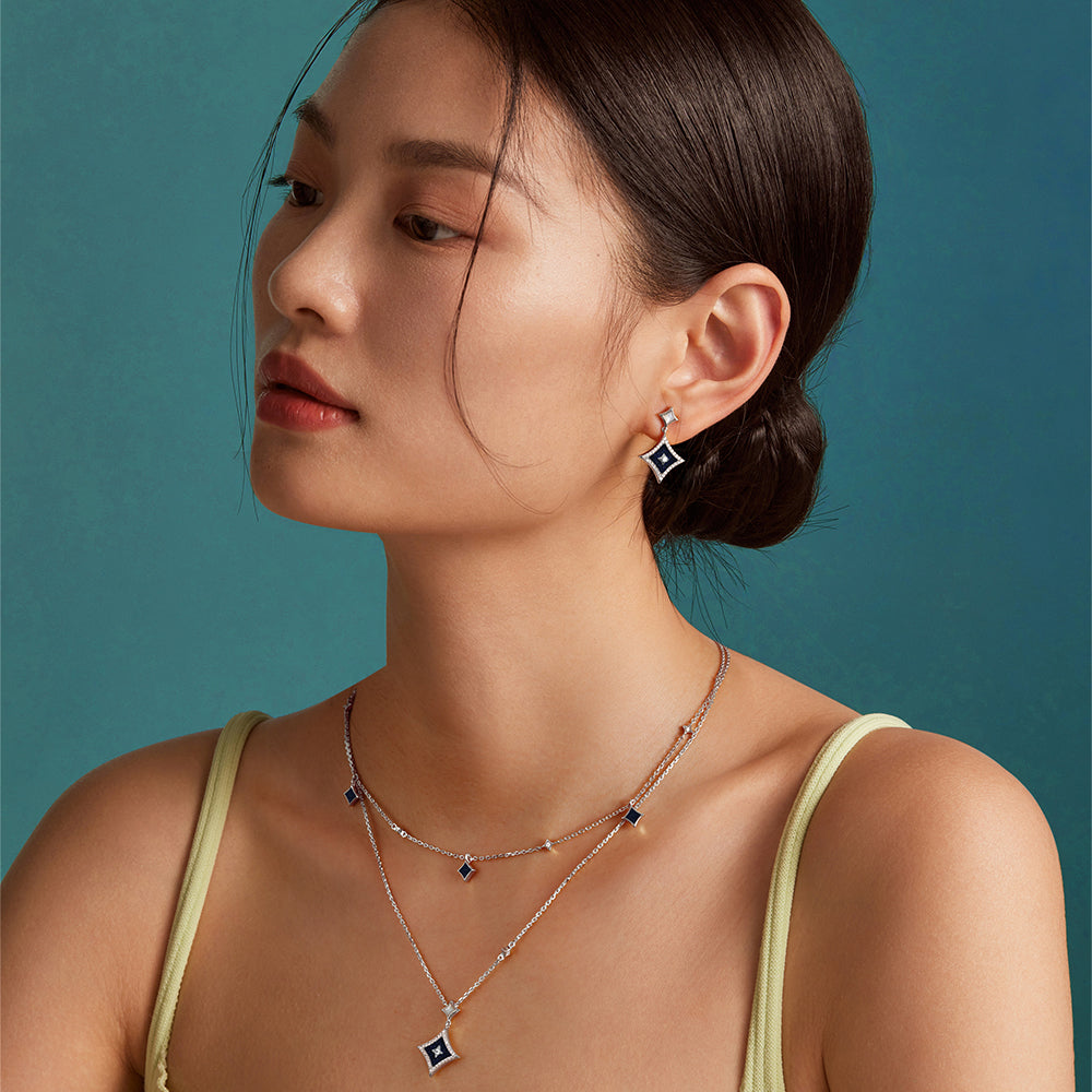 우아한 곡선의 시저 아치가 만나 이루는 사각 별 형태를 고스란히 담아낸 드롭 플레이트는 밤하늘의 유성처럼 눈부신 반짝임을 더합니다.